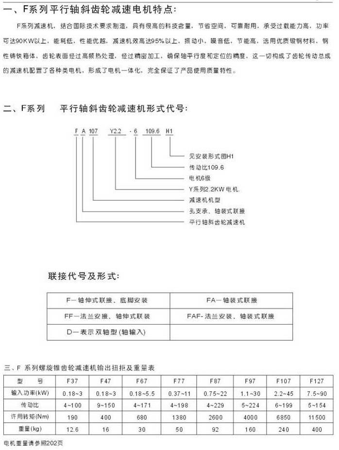 概述特點(diǎn)型號表示法聯(lián)結(jié)代號及形式輸出扭矩及重量表